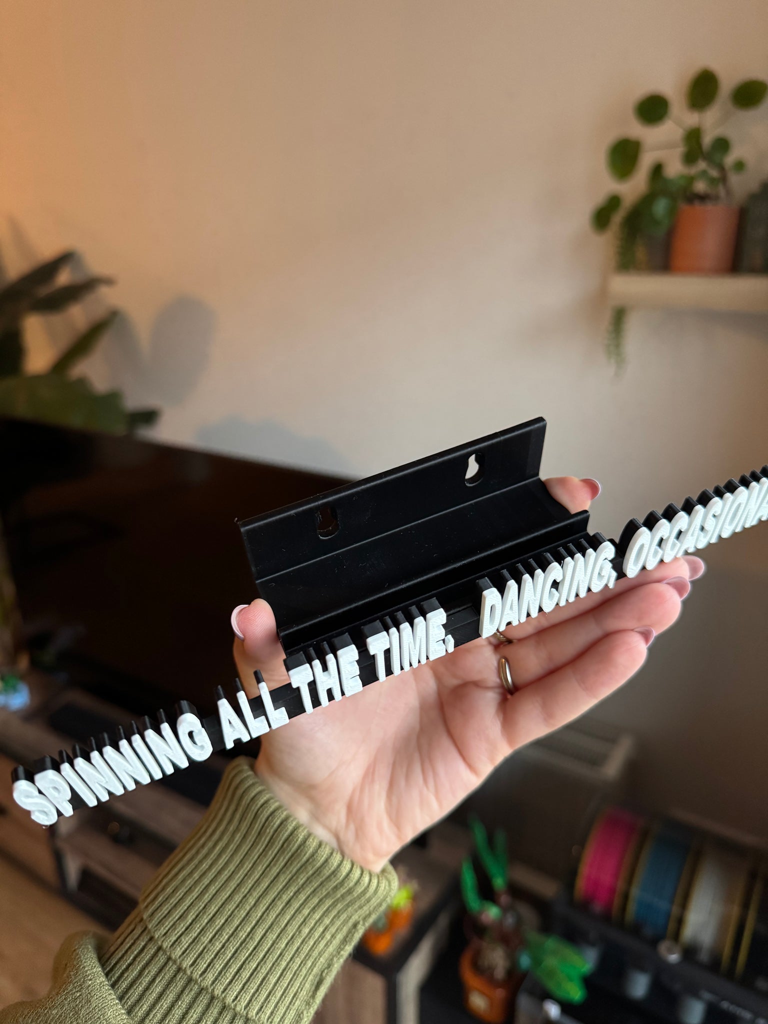 The Spinning All The Time Vinyl Wall Display is a lightweight wall-mounted holder designed to showcase your favorite vinyl record as part of your room decor.